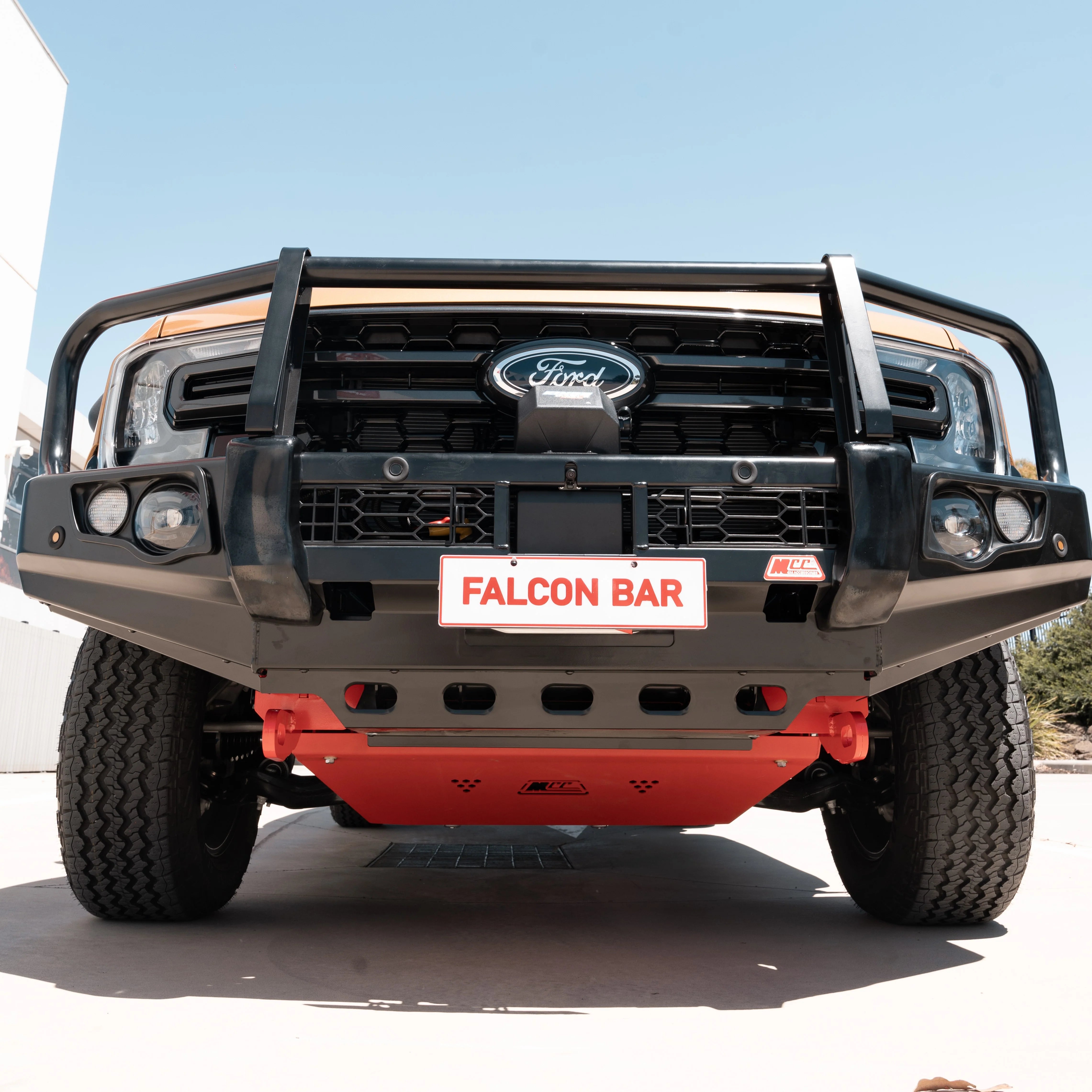 MCC 4x4 Bashplate ออกแบบมาให้เข้ากับรถ Ford Next-gen Ranger/Everest 2022-2025 โดยเฉพาะ แผ่นเหล็กความหนา 3 มม. แข็งแรงทนทาน เคลือบสีแดงกันสนิมไม่ลอกง่าย ทนต่อรอยขีดข่วน ช่วยป้องกันชิ้นส่วนสำคัญเช่น ชุดเกียร์ขับเคลื่อน เพลาท่อ ต่าง ๆ จากแรงกระแทกใต้ท้องรถ