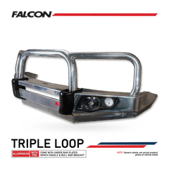 Triton MR 2019-On 707-01A Alloy Falcon Bull Bar Triple Loops Package (LED Foglight) - SKU MCC-02011-701AWFOGUP