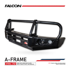 ผลิตจากเหล็กเคลือบสีกันสนิมขนาด 3-5 มม. เพื่อให้แข็งแรงและทนทานใช้งานได้ยาวนาน สามารถติดตั้งอุปกรณ์เสริมได้ วินซ์, เสาวิทยุ, ไฟสปอร์ตไลท์, จุดรับ Hi-Lift Jack มั่นใจในคุณภาพสินค้าด้วยมาตรฐาน ADR จากประเทศออสเตรเลีย Falcon Bar A-Frame จาก MCC 4x4 ช่วยให้เต็มที่กับไลฟ์สไตล์ของคุณได้อย่างปลอดภัยแน่นอน
